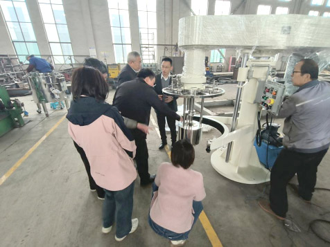 隨后,各位領(lǐng)導(dǎo)駐足真空籃式研磨機(jī)旁,深入了解設(shè)備的工作原理與應(yīng)用場(chǎng)景。該設(shè)備通過(guò)高速旋轉(zhuǎn)的研磨器帶動(dòng)研磨介質(zhì)與物料產(chǎn)生強(qiáng)烈剪切、碰撞,配合泵葉的吸力與分散盤(pán)的分散作用,可在短時(shí)間內(nèi)實(shí)現(xiàn)物料的精細(xì)研磨,同時(shí)能根據(jù)生產(chǎn)工藝需求靈活控制產(chǎn)品溫度,廣泛應(yīng)用于涂料、精細(xì)化工等領(lǐng)域,憑借高效、穩(wěn)定的性能獲得行業(yè)認(rèn)可。此外,易董還向各位領(lǐng)導(dǎo)介紹了各類(lèi)機(jī)器重要部件的研發(fā)與生產(chǎn)工藝,展現(xiàn)了索孚科技在設(shè)備制造環(huán)節(jié)的嚴(yán)謹(jǐn)與專業(yè)。