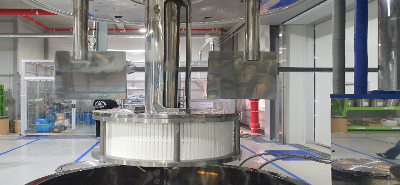 物料在超細(xì)研磨時(shí)會(huì)釋放能量,從而物料自身發(fā)熱,磨效越高,物料發(fā)熱溫度越高。但物料發(fā)熱到一定高的溫度后,由于物料自身溫度較高,阻礙了物料自身釋放能量,使磨效降低。根據(jù)超細(xì)研磨時(shí)物料自身釋放能量的特點(diǎn),我公司開(kāi)發(fā)了雙冷卻型(籃子及拉缸均帶冷卻夾套)籃式砂磨機(jī)。這種雙冷卻的籃式砂磨機(jī)既有效的控制了物料的溫度,又減少了溶劑的揮發(fā),提高了磨效。物料一般控制在溫升30度以內(nèi),而且籃圈使用了高強(qiáng)度材料,提高了使用壽命。棒銷和籃底軸承等易損件都采用了非常耐磨的材料,真正提高了設(shè)備的使用壽命,使共軸籃式研磨機(jī)有了質(zhì)的提升。